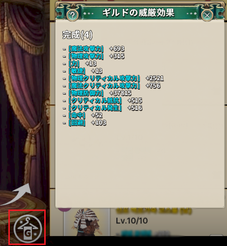 「ギルドの威厳」効果とは、ギルドクローゼットのコレクションの能力値が、すべてのギルドメンバーに常時適用されるギルドバフです。