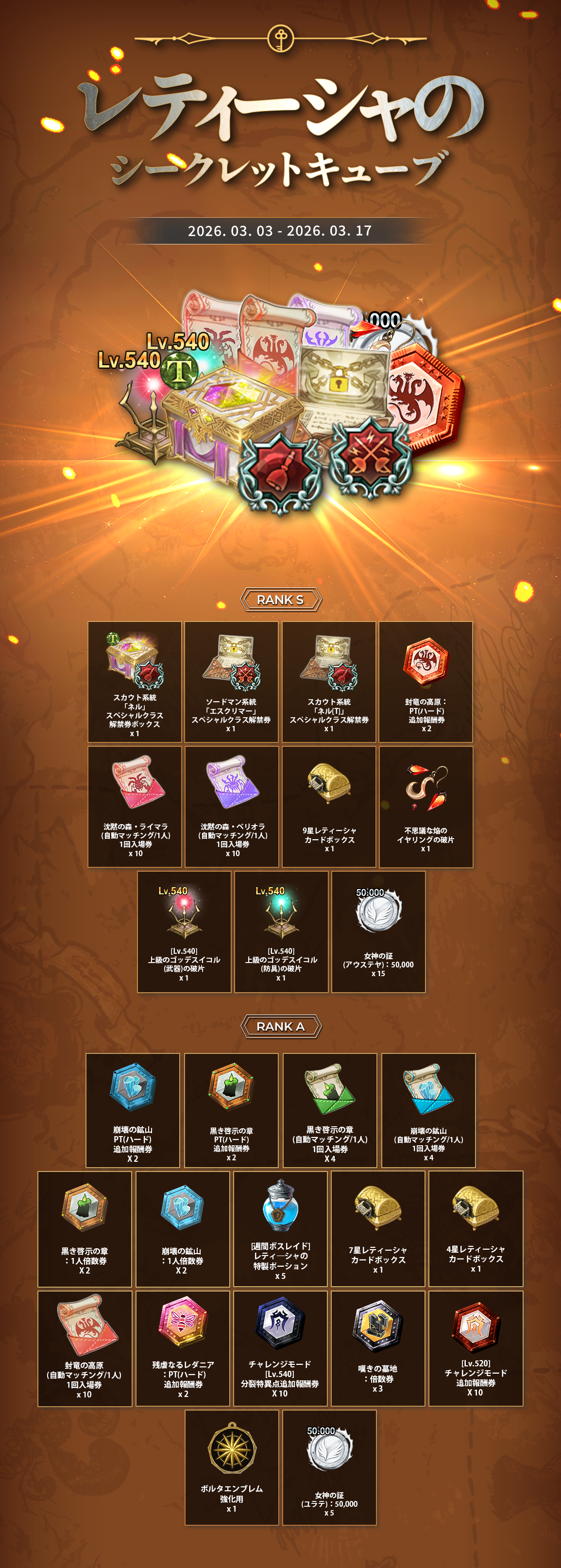 2026年3月3日(火)メンテナンス後より、3月の『レティーシャのシークレットキューブ』を販売いたします!